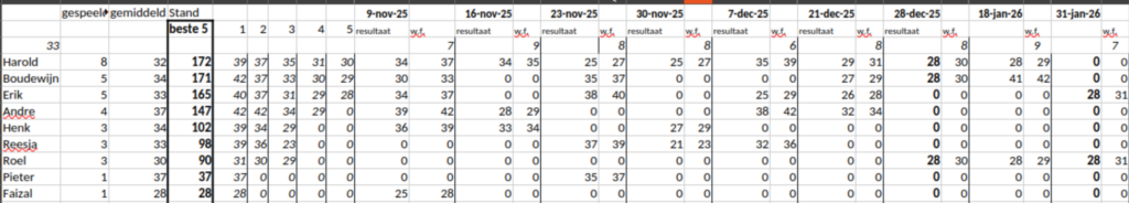 Voor de financien gaf André het woord aan Tom Ahlers die begon te vertellen hoe we in 2024 hadden gepresteerd. Voor het eerst in de clubhistorie hadden we rode cijfers moeten schrijven en dat kwam eigenlijk alleen omdat Tom vergeten was iedereen een tikkie te sturen voor het kerstdiner. Tom is natuurlijk heel integer en trok gelijk de conclusie dat hij met zo’n beleid de club niet meer kon helpen en stopte na bijna 25 jaar met zijn penningmeesterschap. Verbijstering alom natuurlijk, en iedereen wilde gelijk zijn portomonee trekken om de cijfers recht te trekken, maar Tom gaf aan dat het mooi geweest was en dat Coen zijn taak als penningmeester gaat overnemen.